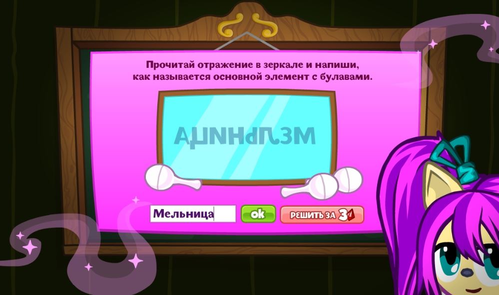Прочитай отражение в зеркале и напиши, как называется основной элемент с булавами.