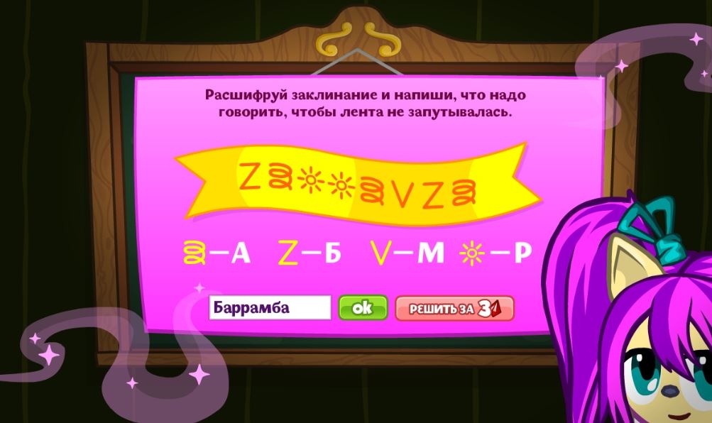 Реши заклинание и напиши, что надо говорить, чтобы лента не запутывалась.