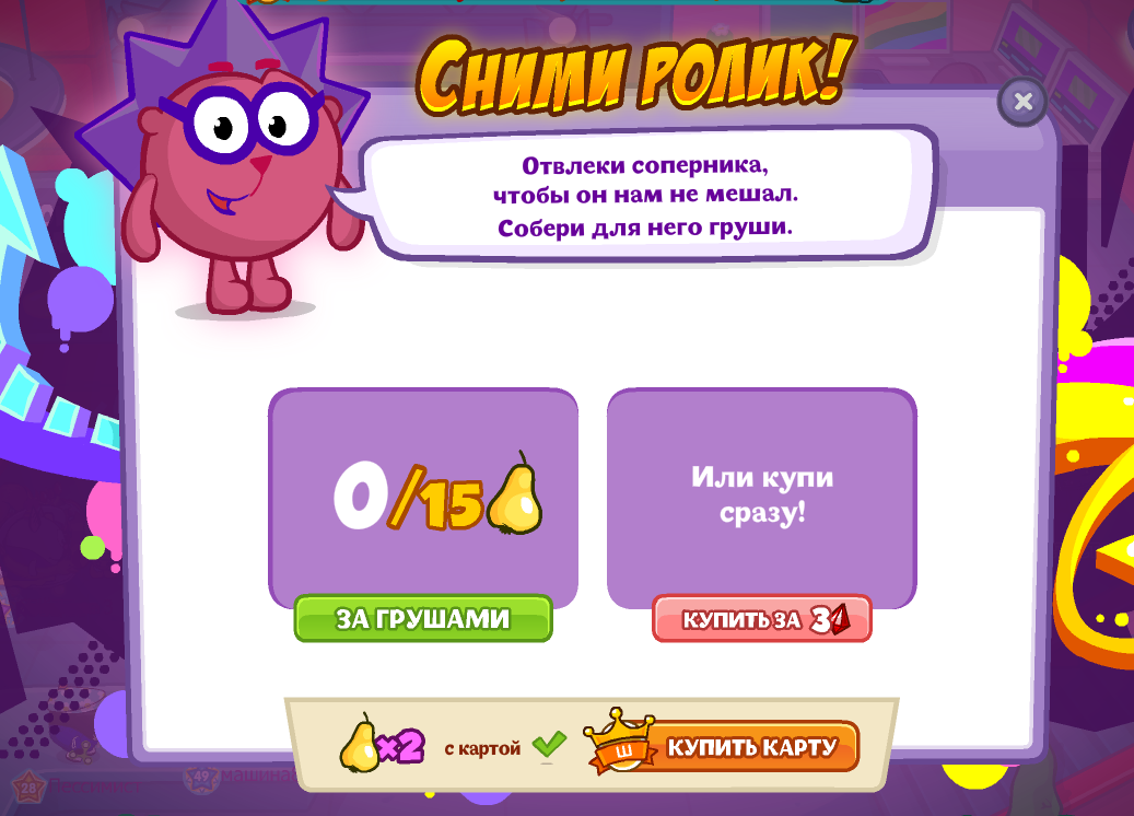 Отвлеки соперника, чтобы он нам не мешал. Собери для него груши.